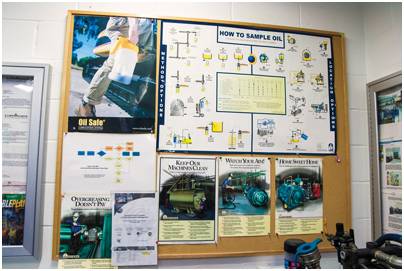 考虑显示注释的最佳实践的照片,也许什么都不再允许。有些公司使用电视显示器来循环培训诸如油取样、污染控制、油脂枪程序、检查提示、储存和处理方法等视频。
